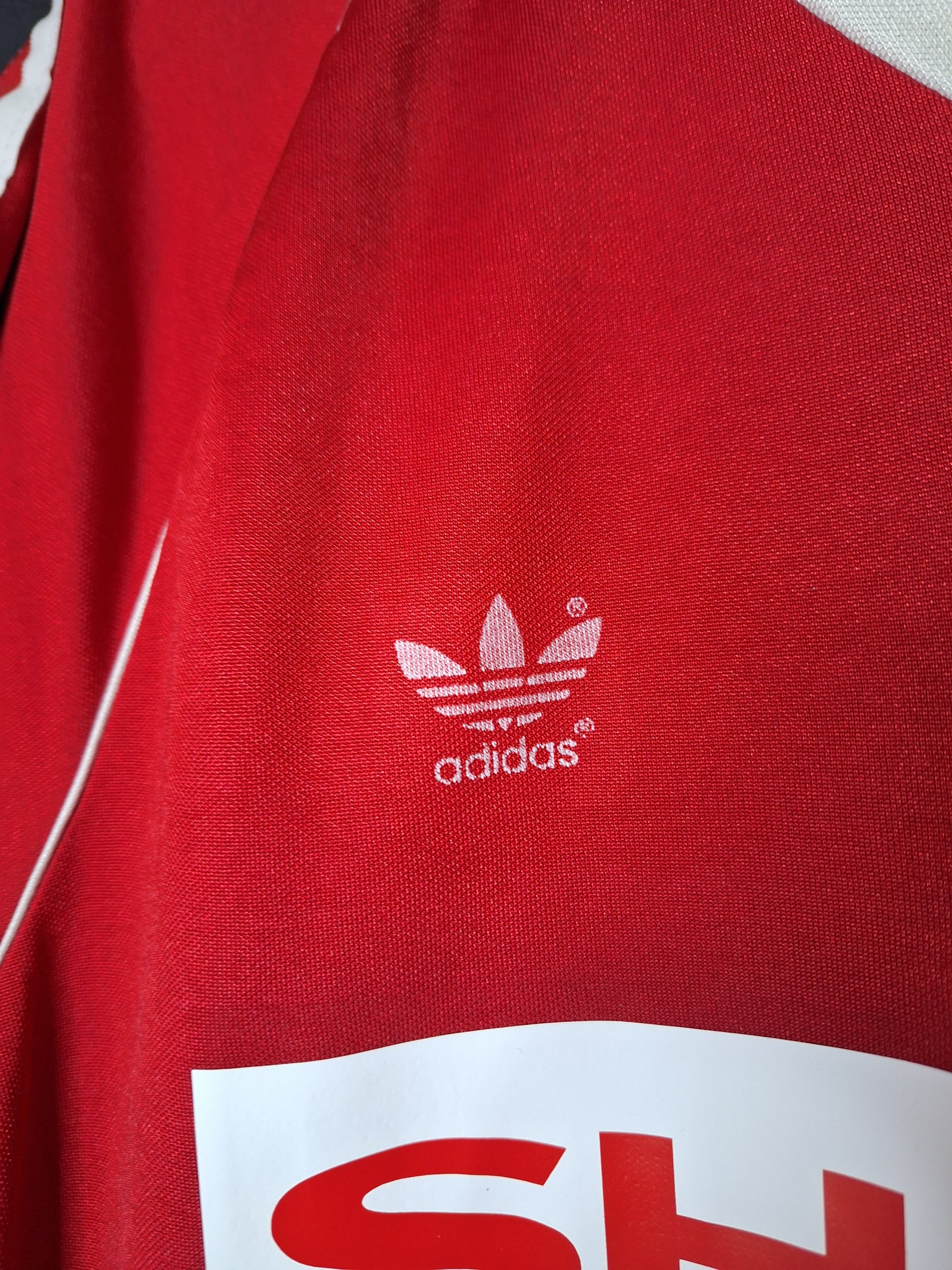 Template original adidas din anii 80, restaurat cu sponsor și stemă retro cu Manchester United. Modelul nu a fost folosit de United, e un tricou concept.